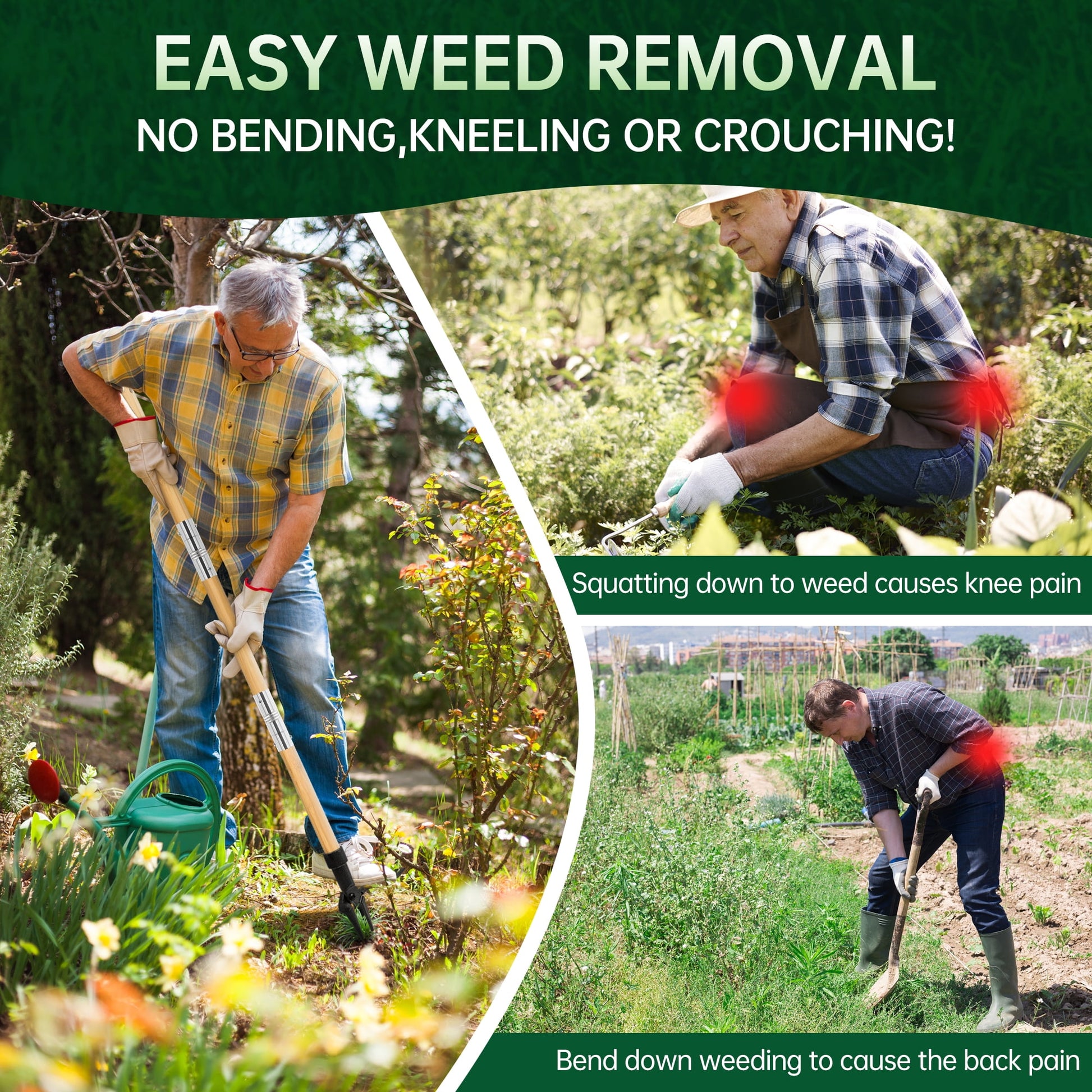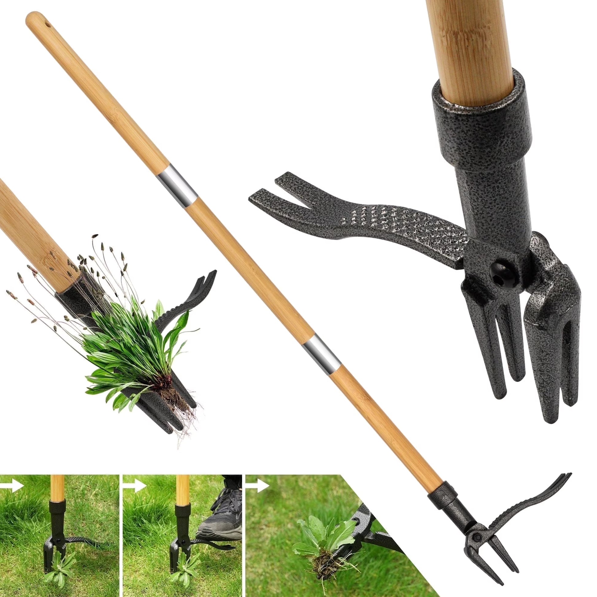 - Durable and stress-free for long-term use-the strong steel head and high-quality bamboo handle of the standing weed puller make it tough and corrosion-resistant. This weed puller will stand the test of time and will not rust, bend or twist. Ensure that this weeding tool remains efficient and durable even after a long time of use, a right-hand man for your garden weeding.