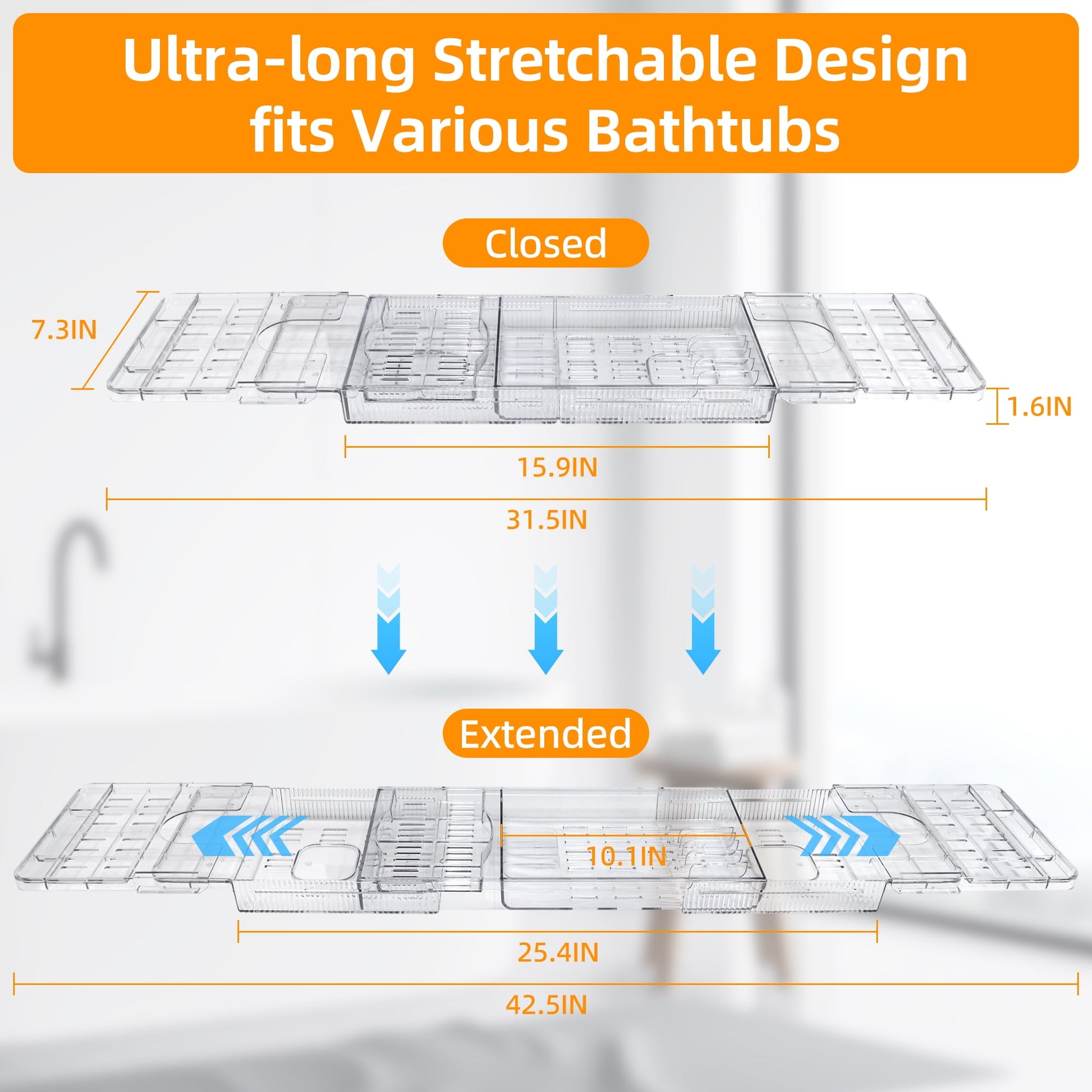- Large Size & Adjustable - Sentryse bath tray for tub is length adjustable from 31.5 to 42.5 inches, designed to fit all regular bathtubs even the widest ones. You can easily adjust the space according to your needs. Whether you have a lot of bath products or simply want more room to spread out, this tub tray has got you covered.