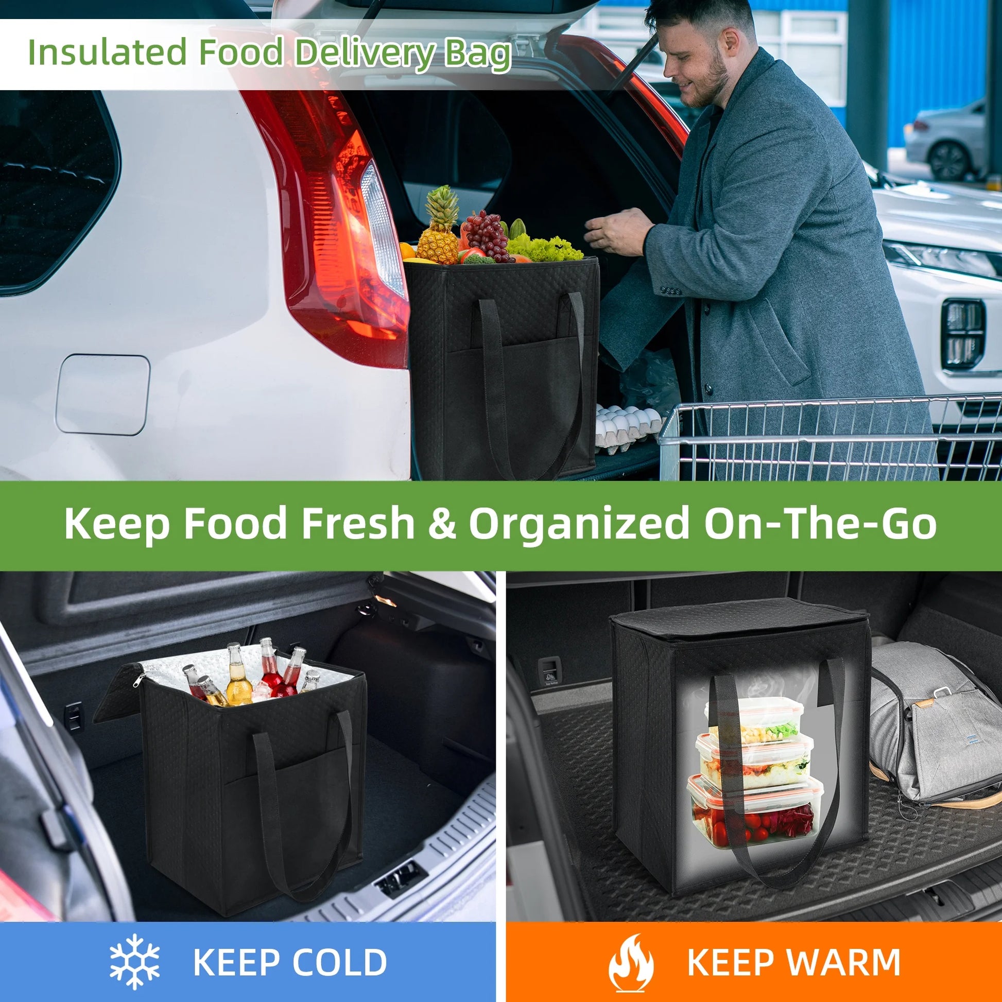 - Large capacity 30L bags perfect for transporting groceries, food, and more