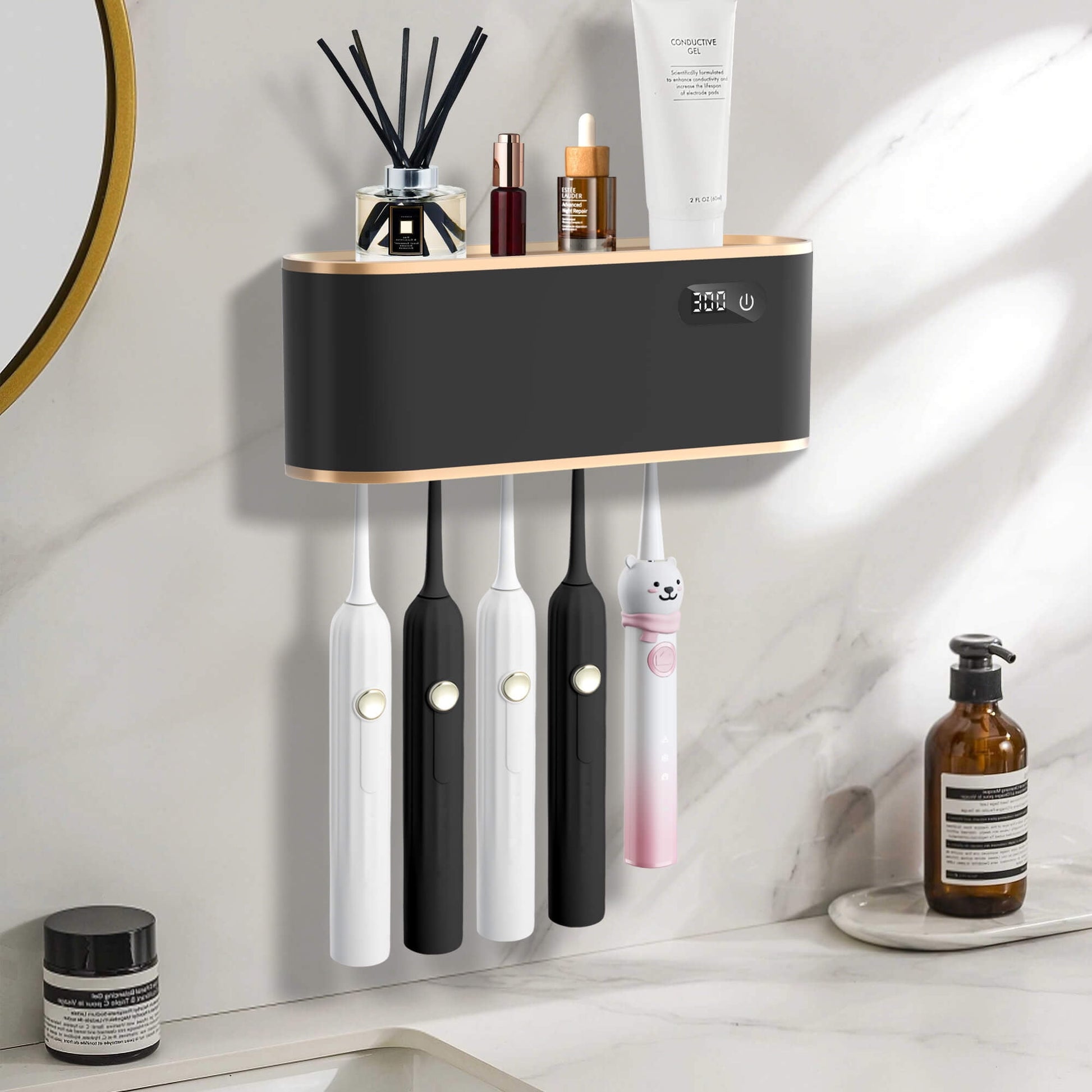 - The top storage shelf makes this toothbrush holder wall mounted perfect for keeping small items within reach. No more clutter—just a tidy, well-organized bathroom space!