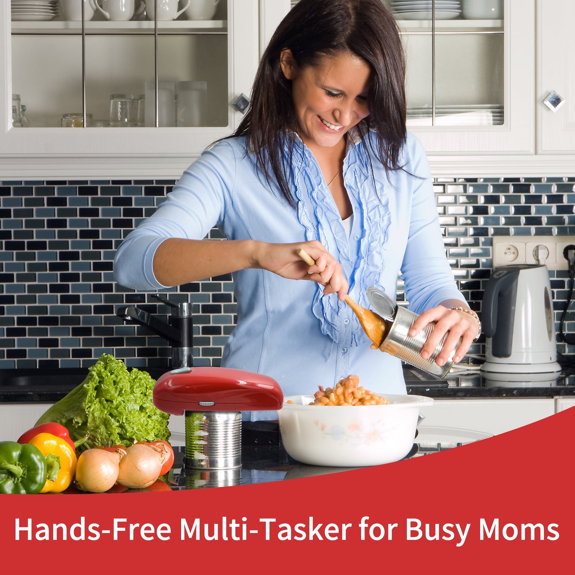 - 🎁 IDEAL FOR BUSY PARENTS & ALL SEEKING SIMPLICITY: This arthritis-friendly can opener is designed for kitchen moms and anyone who wants hassle-free can opening. Works on round lids only (NOT for oval/irregular). A thoughtful gift for birthdays, holidays, or housewarmings—simplify their meal prep with zero effort!