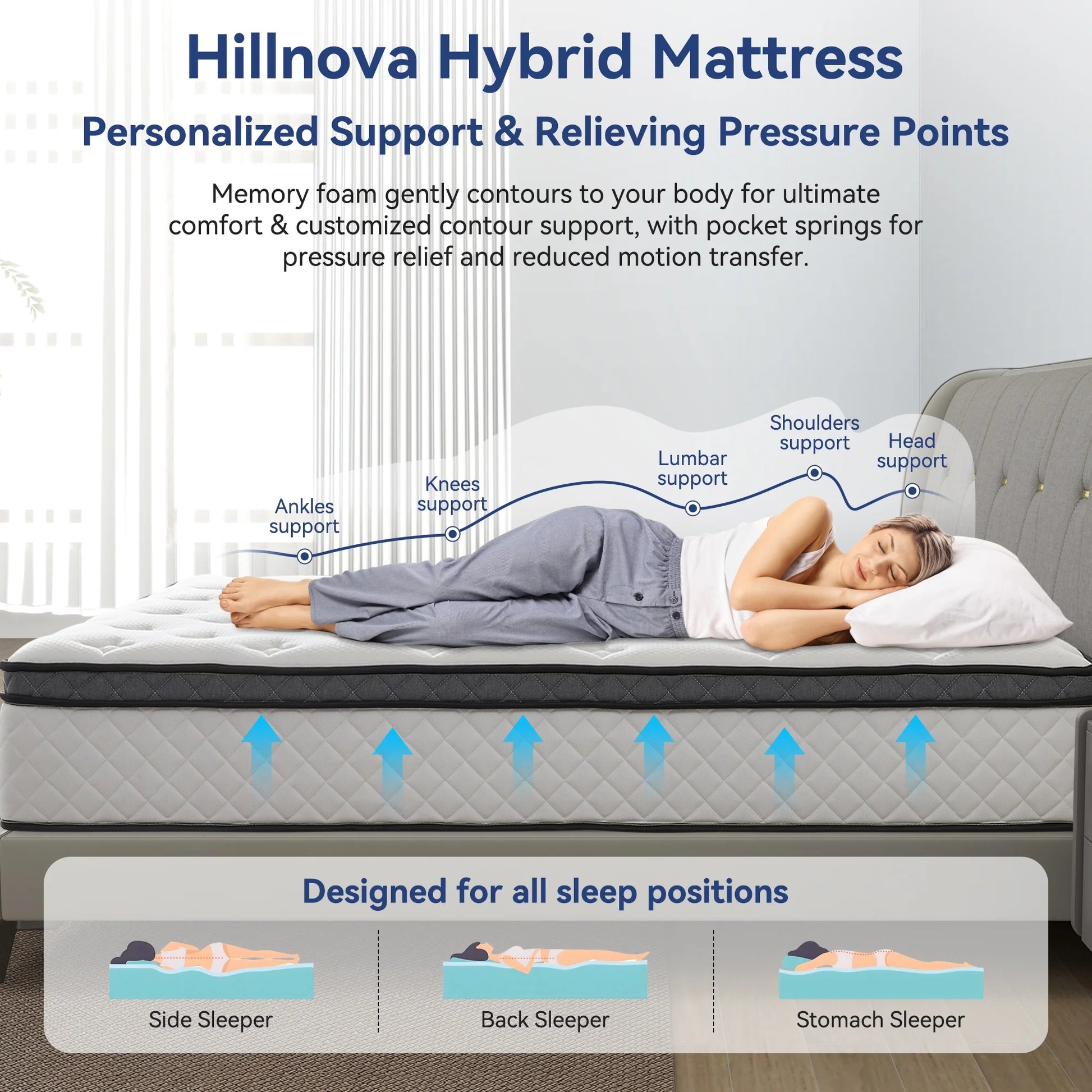 - Hillnova 10" Hybrid Mattress in a Box, Adult, Queen