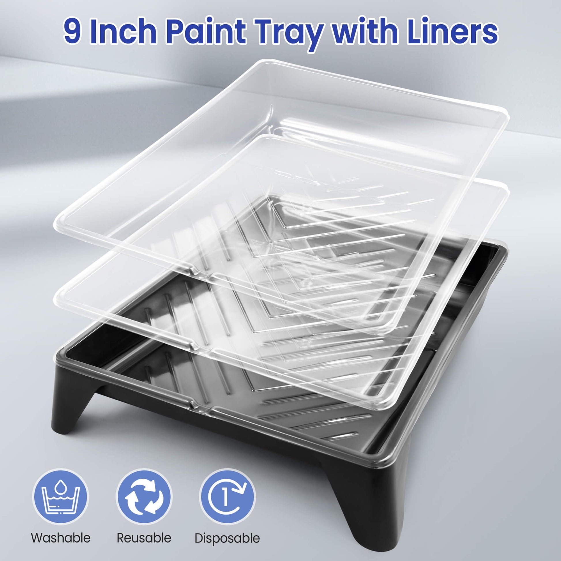 - Built with heavy-duty, crack-resistant plastic, this paint tray features a textured surface that helps evenly coat rollers while minimizing drips and splashes. Holds plenty of paint and cleans up easily for reuse.
