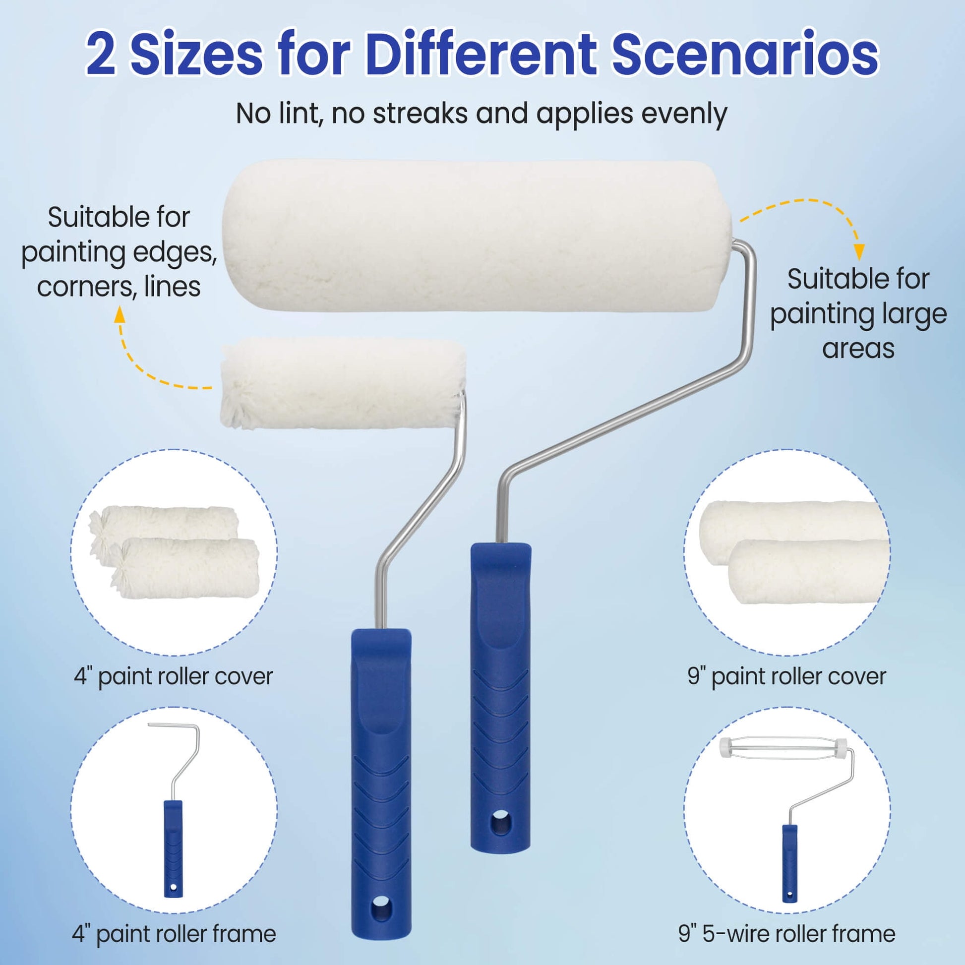 - Tackle any room with Tidymend paint roller set. The 9" paint roller glides on for even coverage, while the 4" mini paint roller handles corners and edges with ease. Saving you time and money!