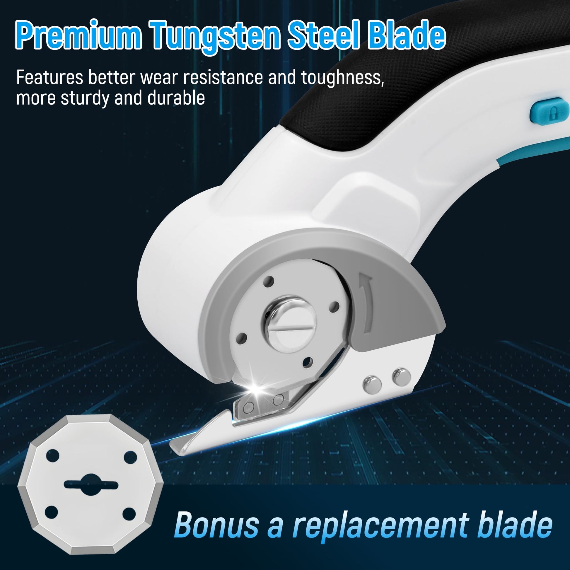 This electric scissor for cardboard features a 360 RPM self-sharpening tungsten steel blade, slicing up to 0.24" thick materials, such as cardboard, fabric, leather and more—with clean cuts. The safety lock and blade guard can prevent accidental injury. Weighing only 1 lb with ergonomic grip for easy handling and carry out. This power rotary cutter built in a 2000mAh large battery, which can provide around 60 minutes continuous use per charge. Ideal for designers, DIYers for crafting, packaging, and sewing.