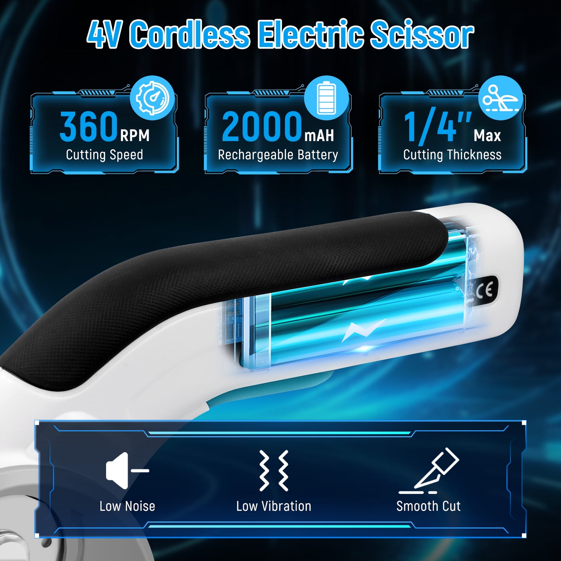 4V High-Speed Electric Scissors, Cordless Rotary Cutter with Tungsten Steel Blade