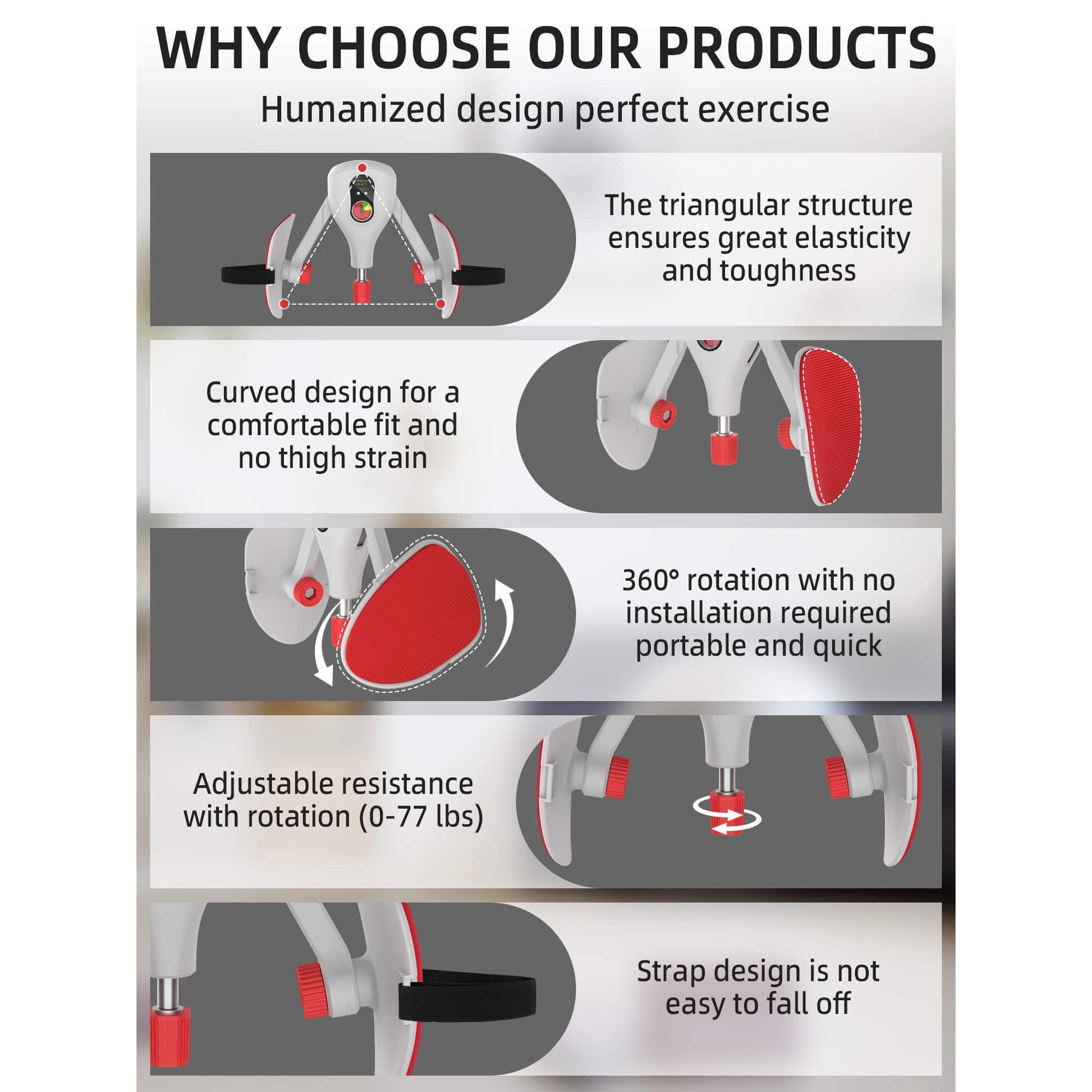 - The built-in digital counter of this thigh exercise equipment displays the number of exercises in real-time, make it easy for you to adjust your exercise plans, which can also help you reach your your fitness goals scientifically and improve workout efficiency.