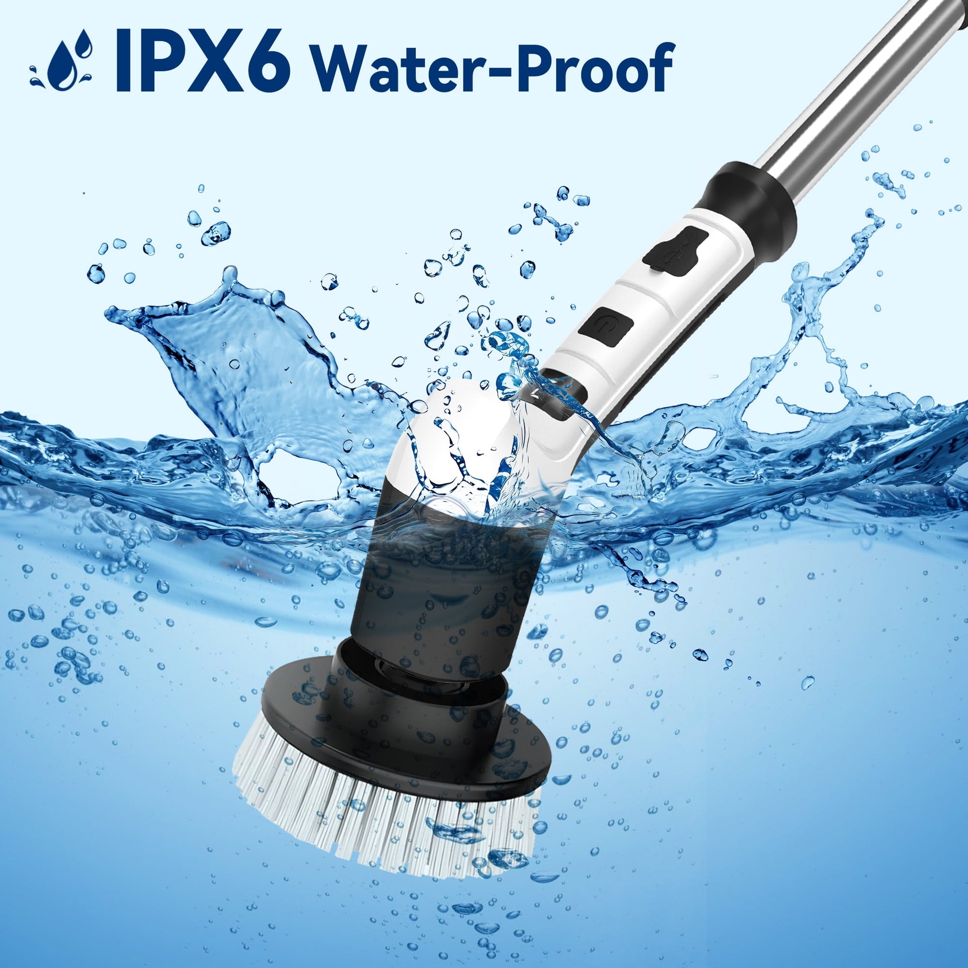 - SMART DISPLAY & IPX6 WATERPROOF: Electric cleaning brush features a LED digital display, which clearly shows the speed level and the remaining battery power. In addition, the IPX6 rated waterproofing allows the spin scrubber to be rinsed under the water for worry-free use.