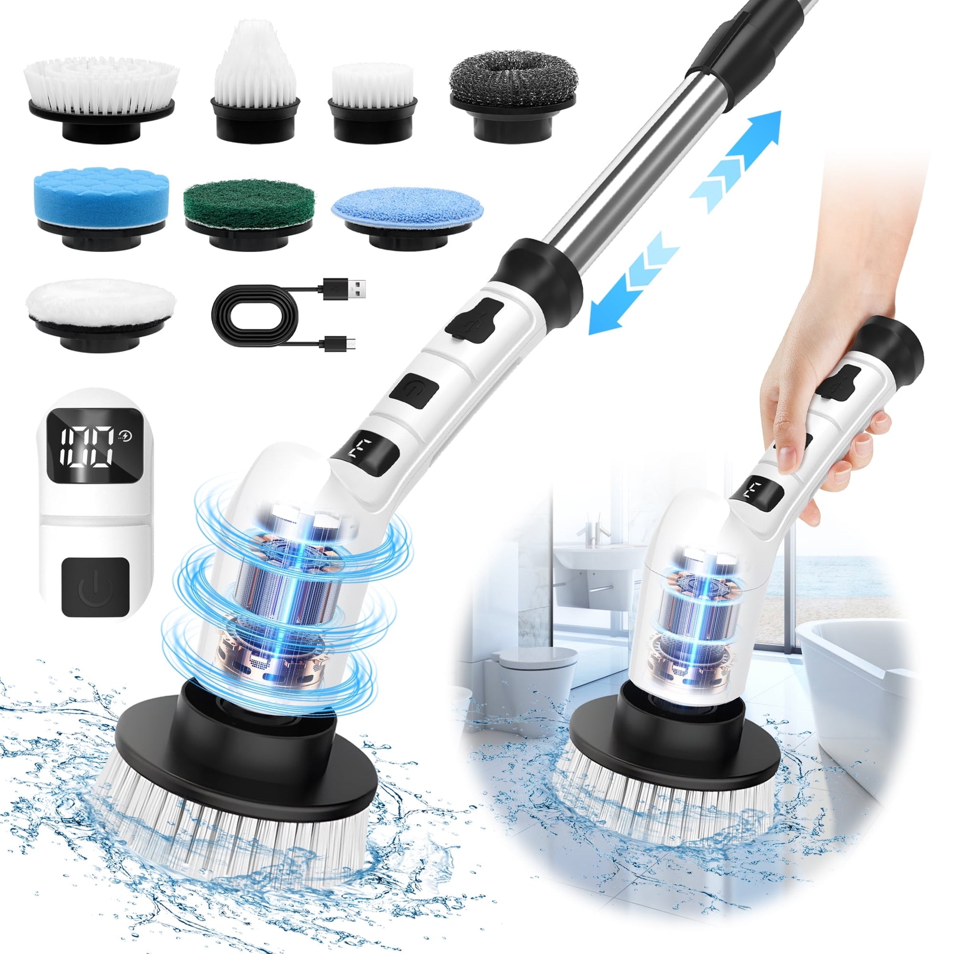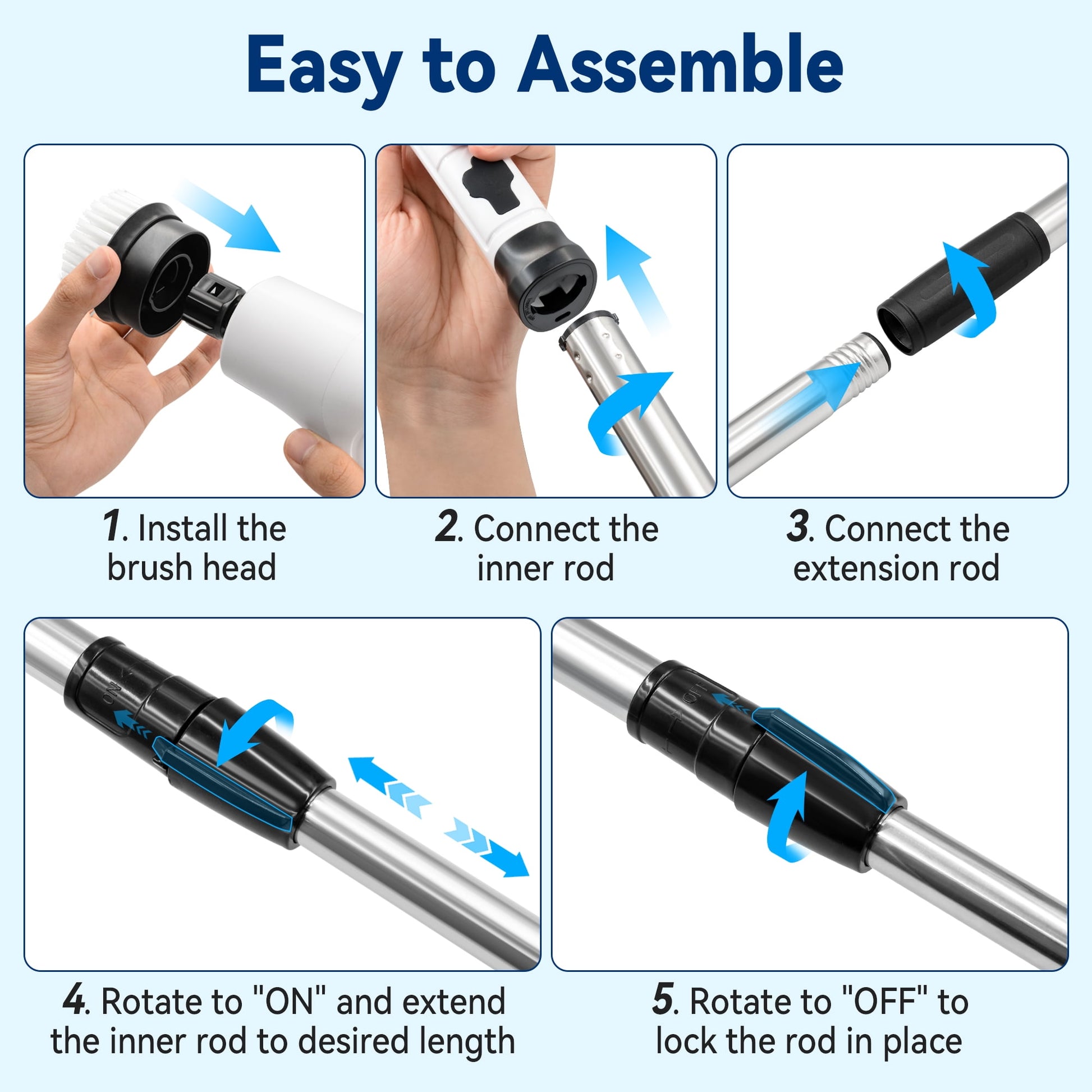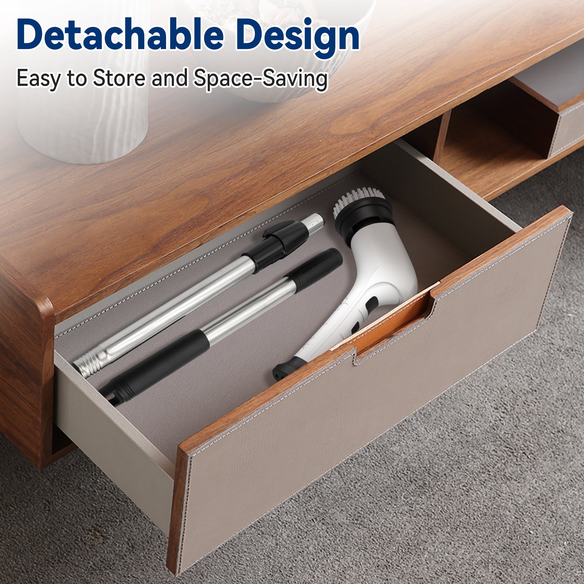 - ULTRA LIGHTWEIGHT DESIGN & LENGTH ADJUSTABLE: The handle length of our electric scrubber can be adjusted from 11-inch to 47-inch. Detachable designed with a portable and compact size, which allows for easy storage in a drawer or in the trunk of a car. It's smaller and lighter than the normal ones! The detachable scrubber can be used as a small appliance for close-up cleaning without installing the handle.