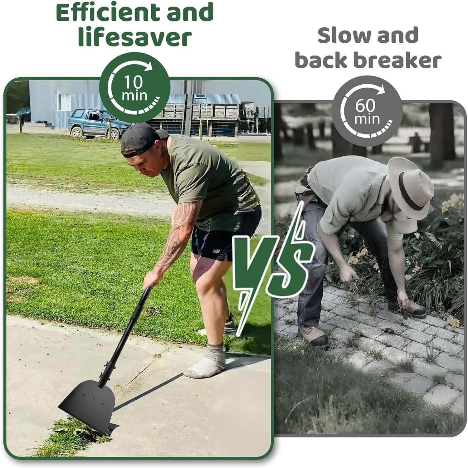Crafted from high-quality stainless steel, both the cleaning shovel head and handle are sturdy and built to last. The thickened shovel head ensures effortless weed removal and ice scraping without the blade rolling. Additionally, the metal handle offers exceptional durability compared to traditional wooden handles, making it ideal for heavy-duty use.