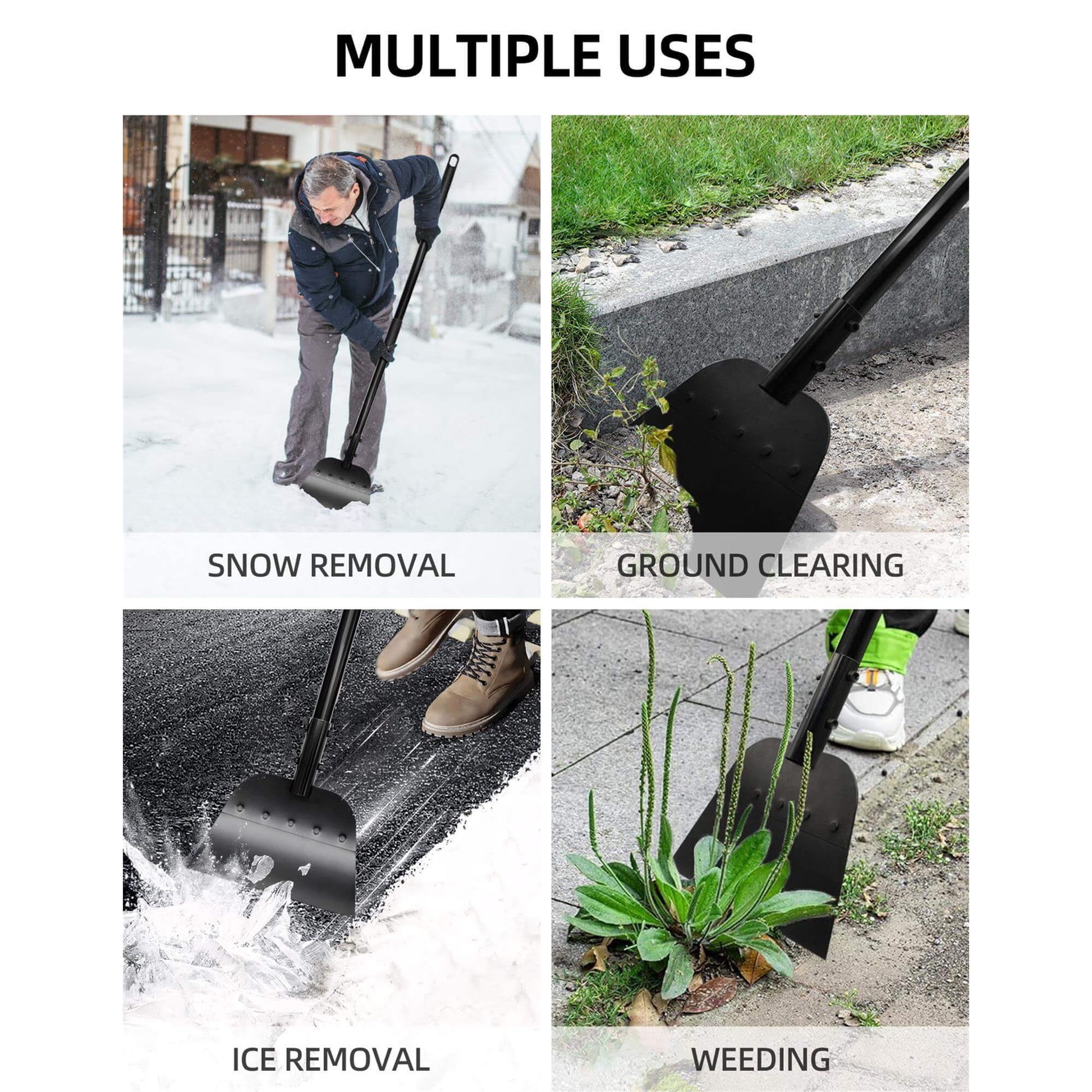Tackle any season with our multifunctional flat shovel! From shoveling snow in winter to clearing weeds, moss, and even cement mortar year-round, this tool is a must-have for every gardener and DIY enthusiast.