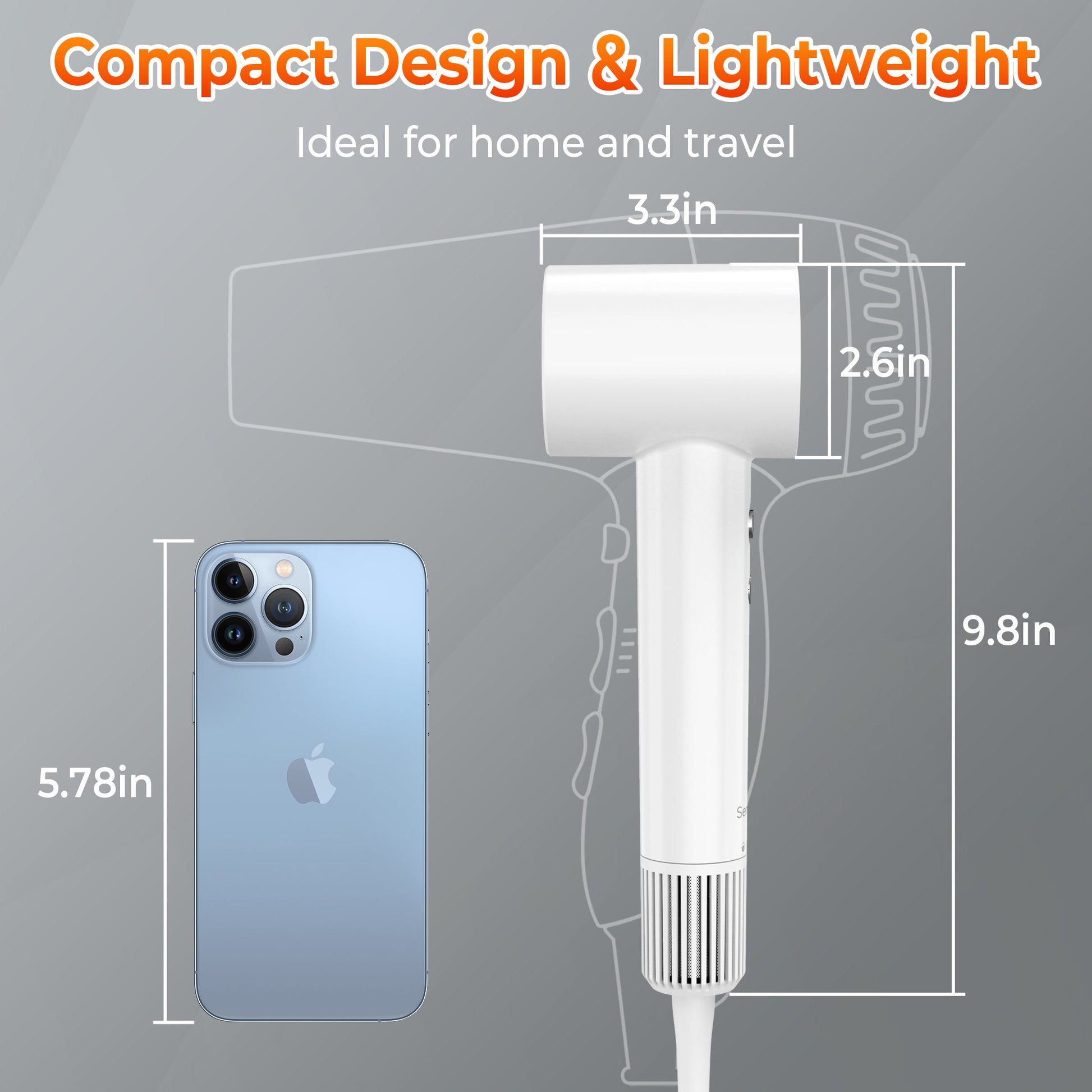 - Portable & Safe Design: Weighing only 1.2 lbs, this salon-grade dryer is travel-friendly, easy to pack, and light to hold. Crafted from flame-retardant material, it also includes an overheating protection chip to ensure safe daily use.
