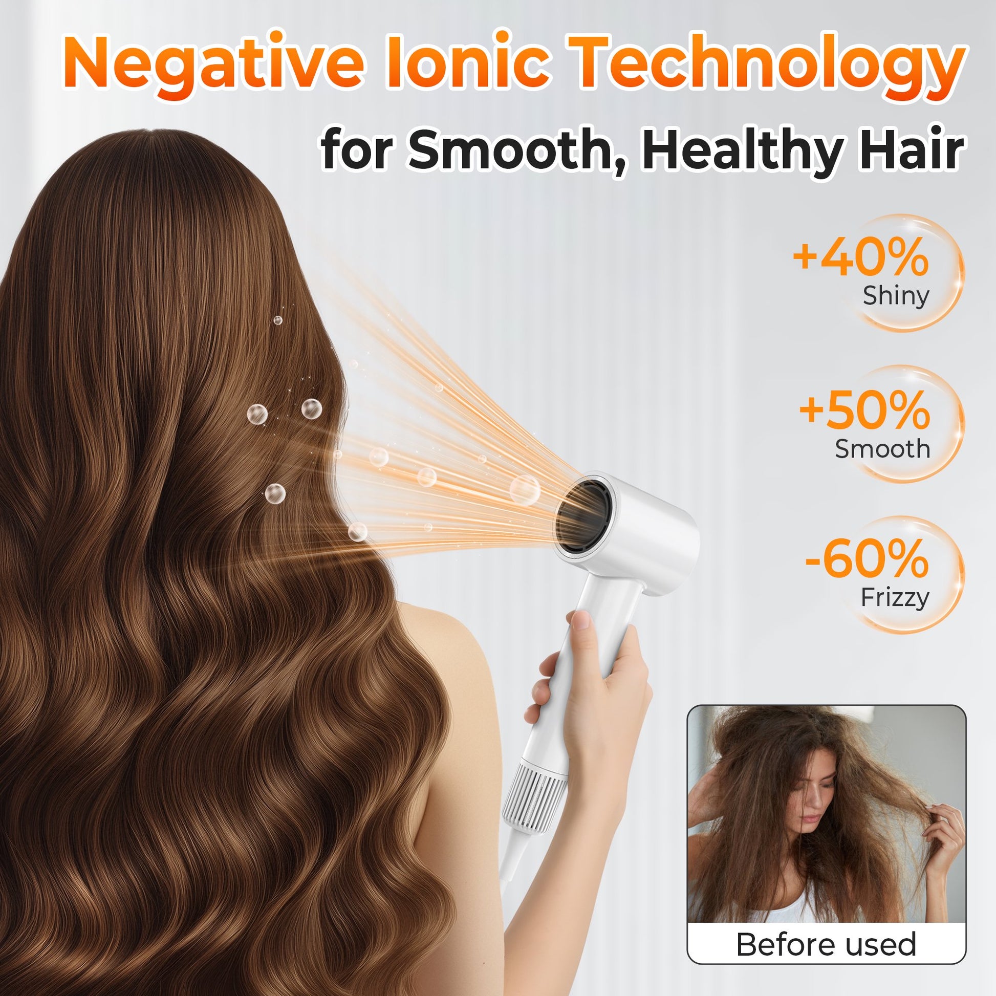 - Negative Ion Hair Care Technology: When in use, the dryer releases 200 million negative ions. This effectively reduces hair static, tames frizz, locks in moisture, and leaves hair smooth and silky—delivering salon-quality results with every use.