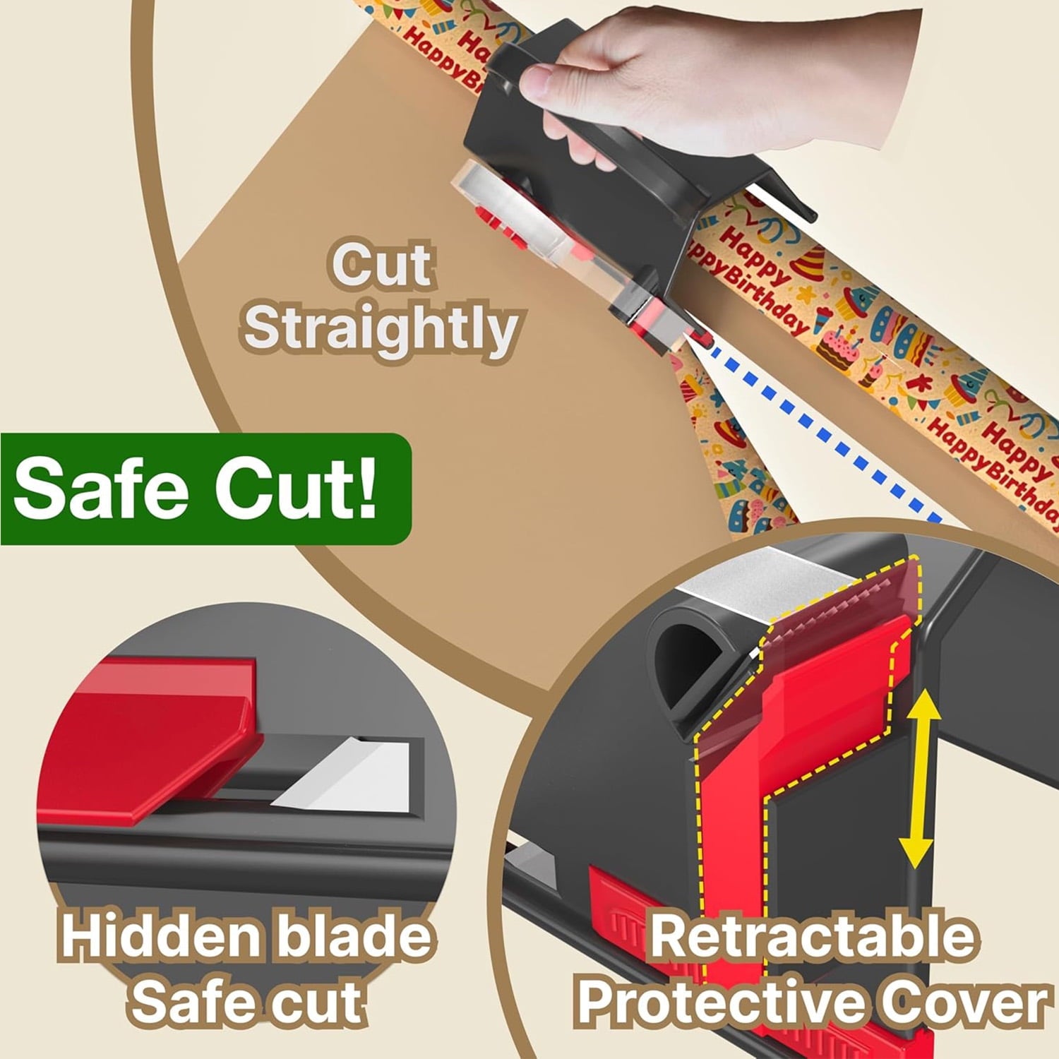 Easy cut wrapping paper rolls and dispenser the tapes, you can get 2 cutters and 4 transparent tapes, 2 replaceable blade with cap. These wrapping paper cutter and tape dispenser can fully meet your needs for packaging gift boxes during the Christmas season. Based on estimates, the amount of these tools and tapes is sufficient to support the packaging work for approximately 1,000 gift boxes. This gift wrapping tool means that whether you are preparing gifts for a family gathering or running a small gift shop, these can ensure and smooth packaging process.