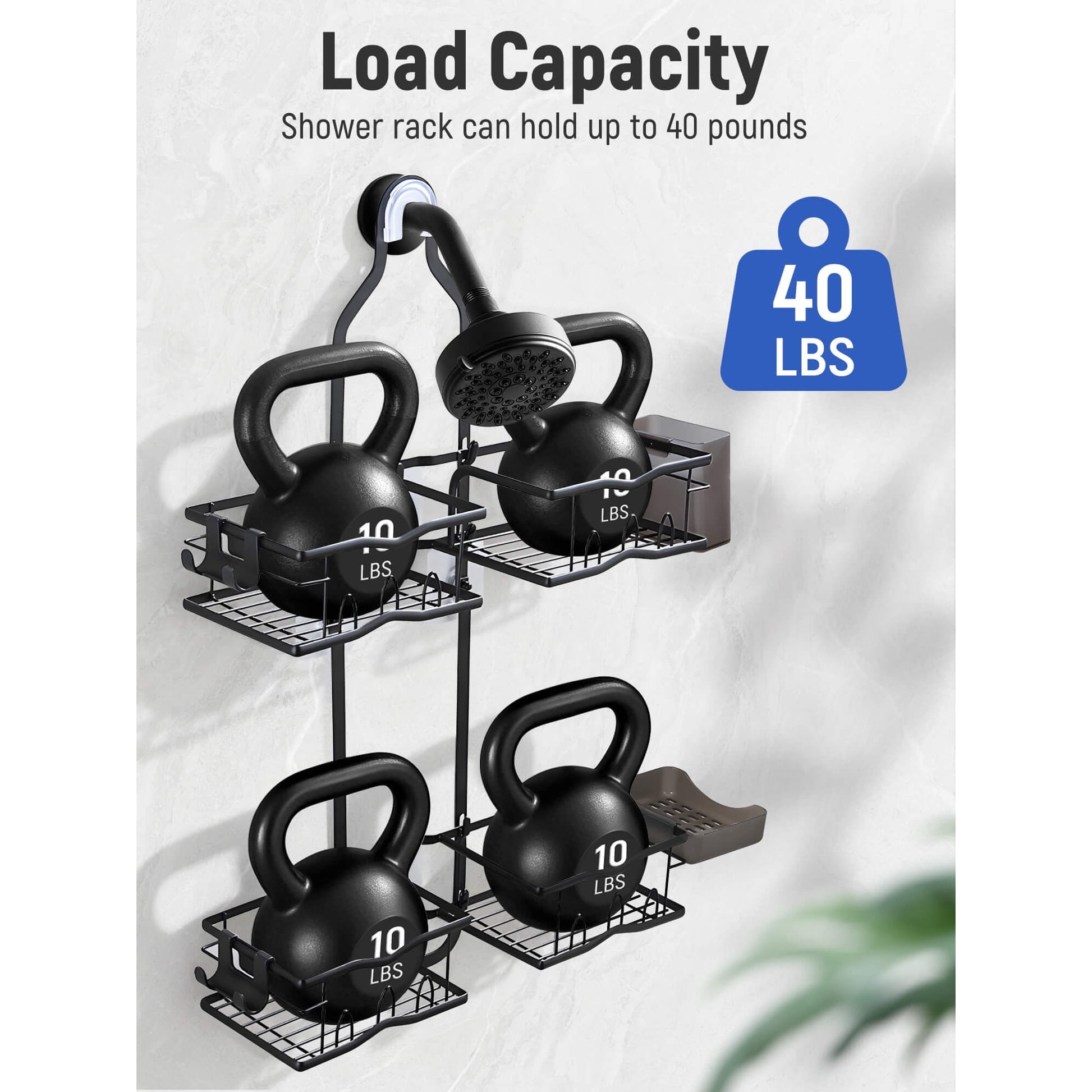 Constructed from durable carbon steel, the Sentryse Hanging Shower Caddy offers exceptional rust resistance and a max load capacity of 40 lbs, strong load bearing. Shower organizer hanging are not deformation, or breakage.