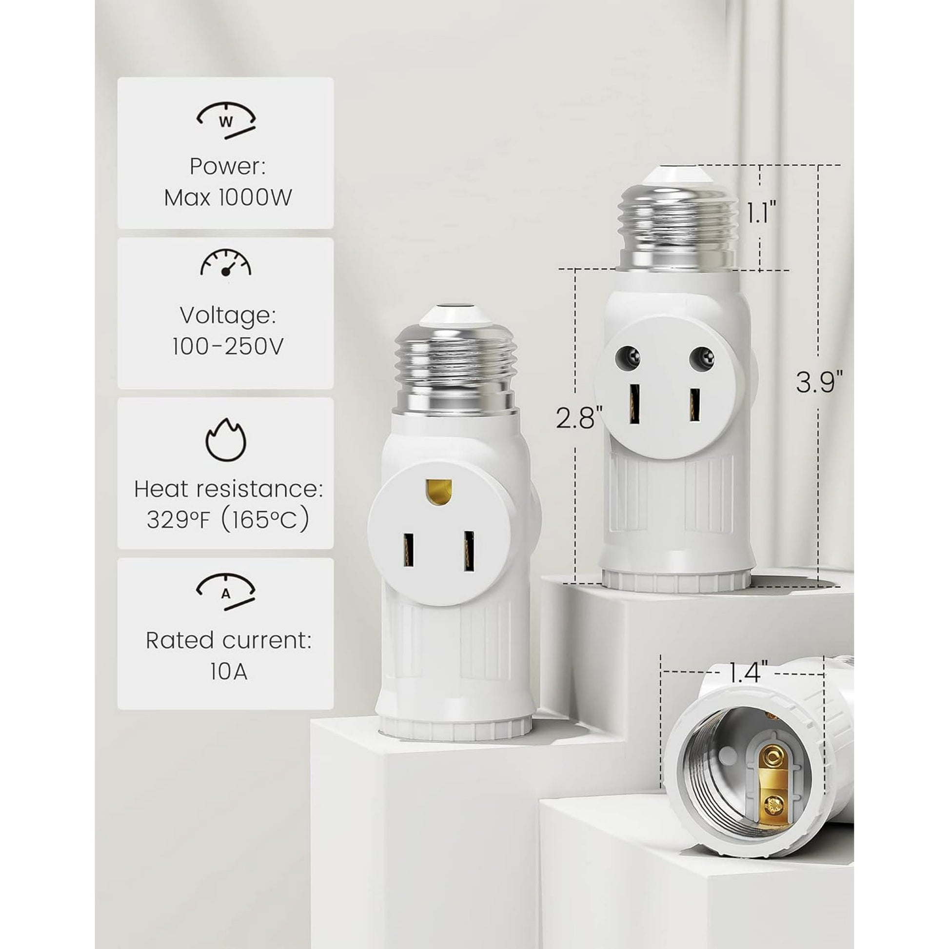 Easy to Install:This light socket adapter is simple to install and requires no tools, just screw it into an existing E26 lamp socket and plug in your devices. This makes it an ideal solution for adding extra power access for a range of devices and lighting needs.