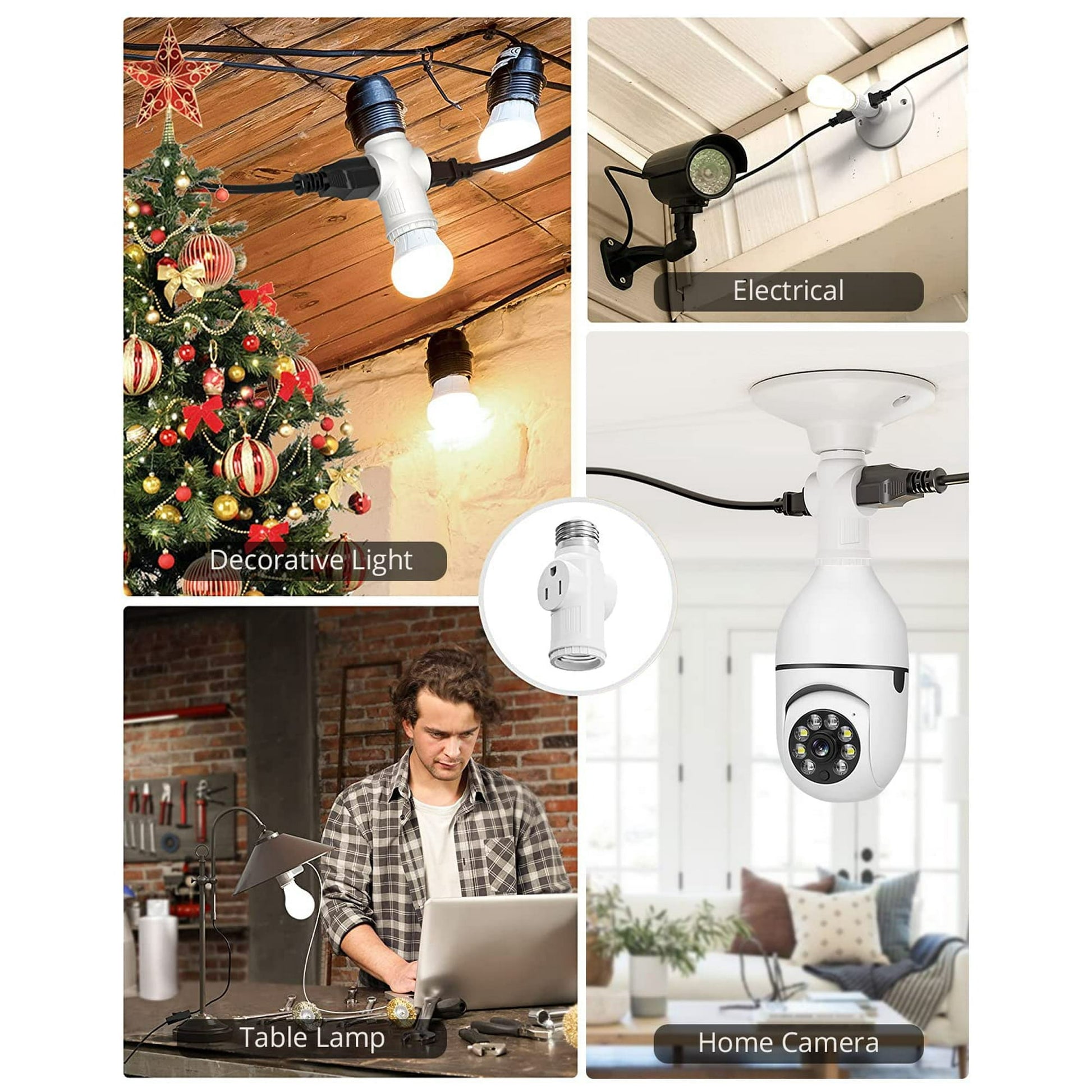 Versatile Light Bulb Socket Adapter:This light socket adapter features a 3-prong design that accommodates both 2-prong and 3-prong plugs, as well as an E26 light bulb socket and two additional polarized outlets for added convenience. (Note: Light bulb not included)