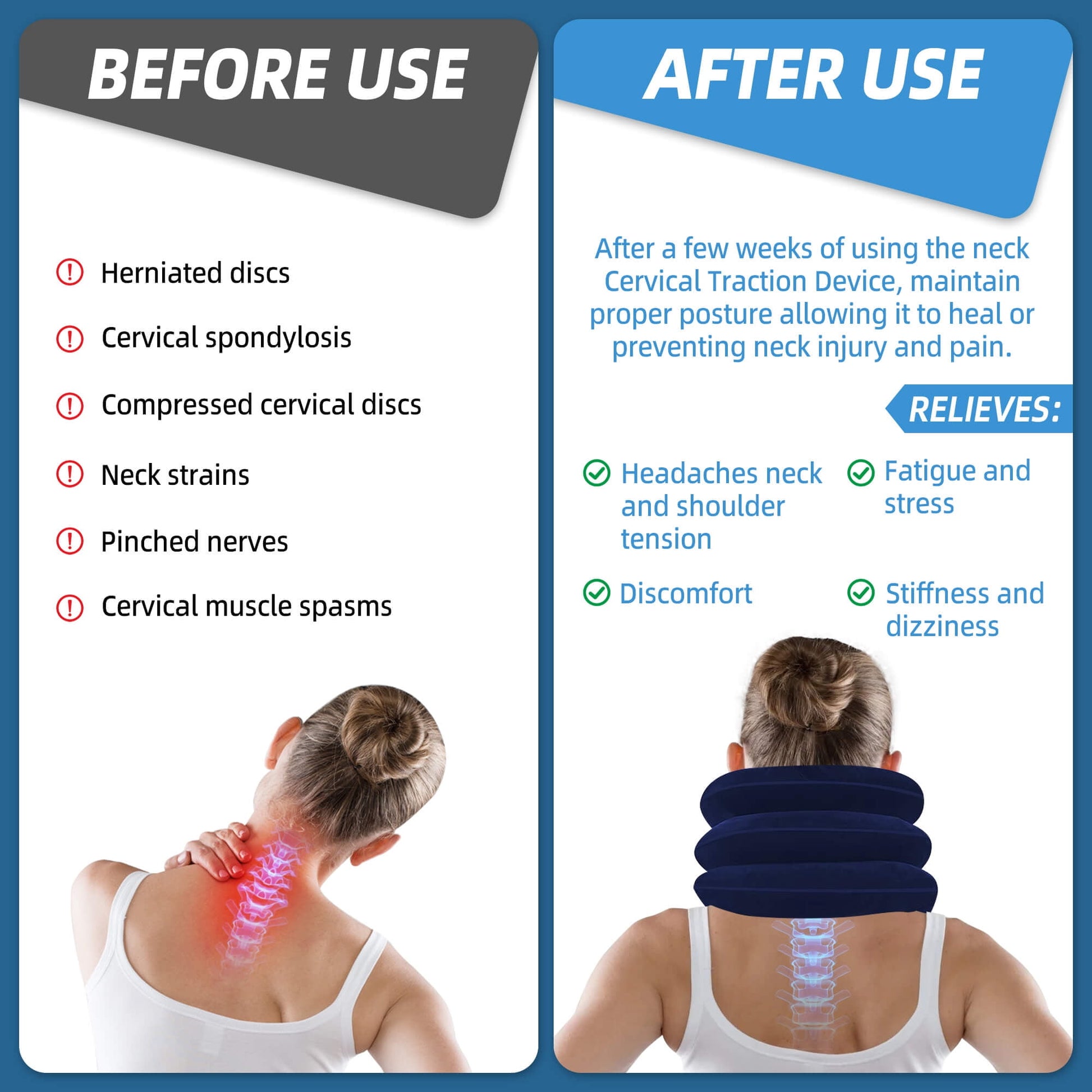 Sentryse Neck Stretcher for Pain Relief, Cervical Neck Traction Device, Adjustable Inflatable Neck Brace, Neck Traction Pillow for Home Use Neck Decompression, Blue
