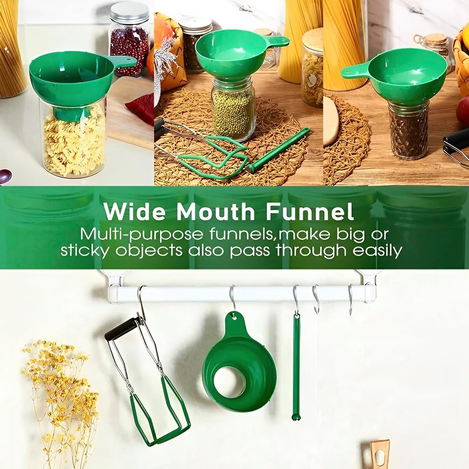 PACKAGE INCLUDES5 pieces of Canning Kit: A Wide Mouth Funnel, Jar Wrench, Jar Lifter, Magnetic Lid Lifter, Canning Tongs. This can kit will be enough to meet all your needs for canned food.