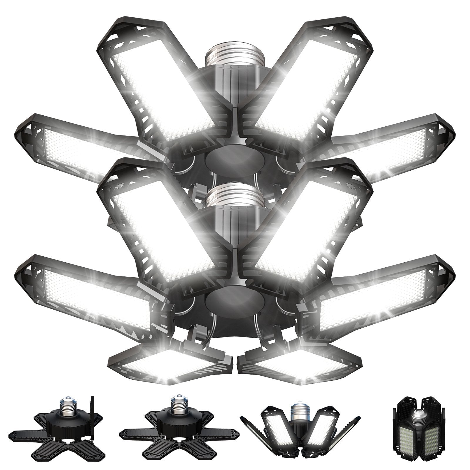 Upgraded Garage Lighting Bulb is made of high quality aluminum heatsink and each panel features a unique hollow-out design that make a better heat dissipation. Make lifespan more than 50000 hours, and equivalent to 6 traditional light bulbs, more than 85% energy saving than traditional lamp.